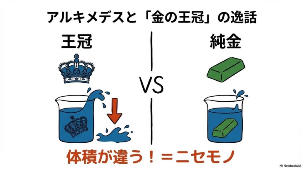 「理科は苦手…」という方もご安心ください。有名な王様の逸話を交えながら、誰にでも直感的に理解できるように説明していきますね。