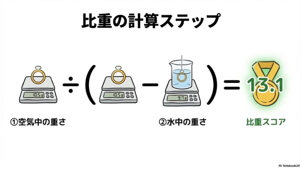 - 位置づけ:家庭での測定は、明らかに比重が軽い偽物を見破るための「一次スクリーニング」。