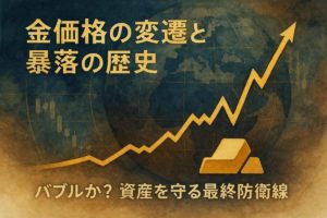 ニュースで報じられる「ドル建て価格」と、実際の「円建て価格」の間に生じるズレの仕組みを解き明かし、為替の動きから相場を予測する方法を学びます。 - 金価格の変遷と暴落の歴史|資産を守るインフレヘッジと有事の金